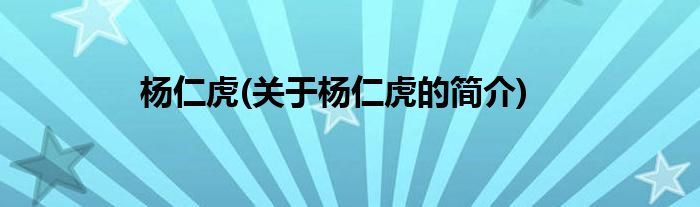 大家好,杨仁虎,关于杨仁虎的简介很多人还不知道,现在让我们一起来看看吧!