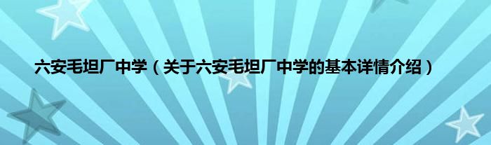 本文关于六安毛坦厂中学的基本详情介绍就讲解完毕,希望对大家有所帮助。