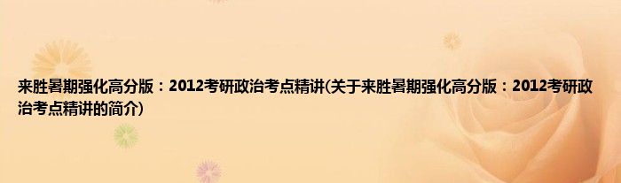 本文关于来胜暑期强化高分版:2012考研政治考点精讲的简介就讲解完毕,希望对大家有所帮助。