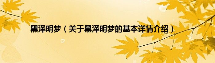 大家好我是小蝌蚪,黑泽明梦,关于黑泽明梦的基本详情介绍很多人还不知道,那么现在让我们一起来看看吧!