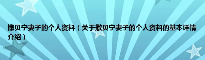 本文关于撒贝宁妻子的个人资料的基本详情介绍就讲解完毕,希望对大家有所帮助。