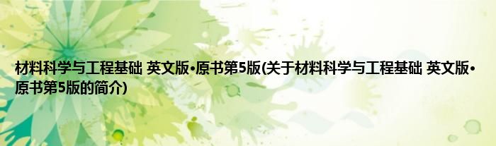 本文关于材料科学与工程基础 英文版·原书第5版的简介就讲解完毕,希望对大家有所帮助。