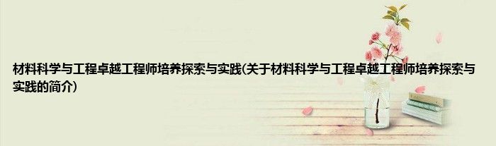大家好,材料科学与工程卓越工程师培养探索与实践,关于材料科学与工程卓越工程师培养探索与实践的简介很多人还不知道,现在让我们一起来看看吧!