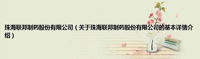 珠海联邦制药股份有限公司(关于珠海联邦制药股份有限公司的基本详情介绍)