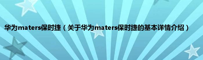 本文关于华为maters保时捷的基本详情介绍就讲解完毕,希望对大家有所帮助。