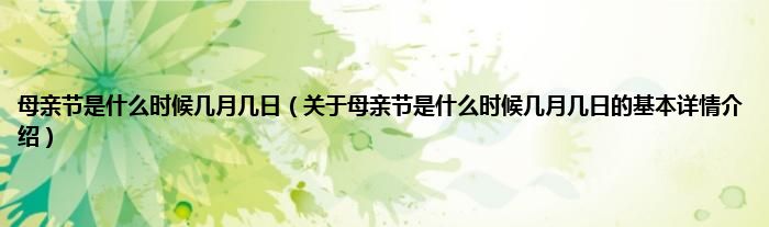 本文关于母亲节是什么时候几月几日的基本详情介绍就讲解完毕,希望对大家有所帮助。