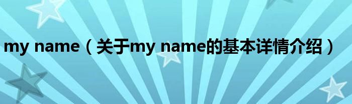 本文关于my name的基本详情介绍就讲解完毕,希望对大家有所帮助。