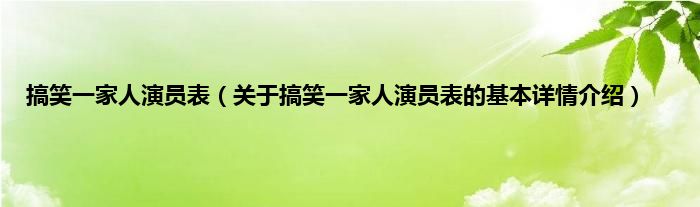 本文关于搞笑一家人演员表的基本详情介绍就讲解完毕,希望对大家有所帮助。