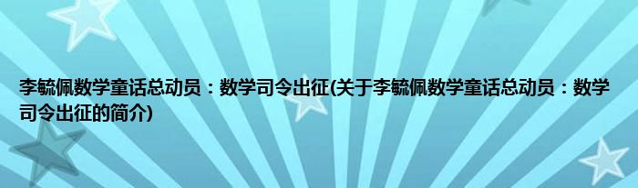 本文关于李毓佩数学童话总动员:数学司令出征的简介就讲解完毕,希望对大家有所帮助。