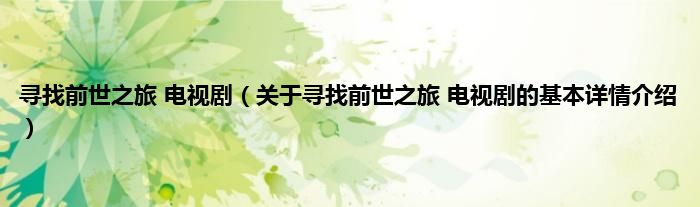 本文关于寻找前世之旅 电视剧的基本详情介绍就讲解完毕,希望对大家有所帮助。