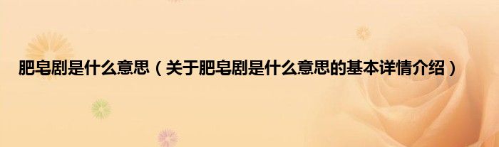 本文关于肥皂剧是什么意思的基本详情介绍就讲解完毕,希望对大家有所帮助。