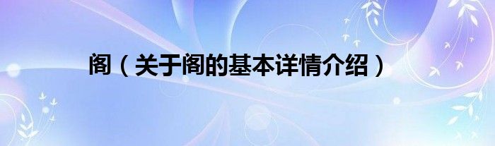 本文关于阁的基本详情介绍就讲解完毕,希望对大家有所帮助。