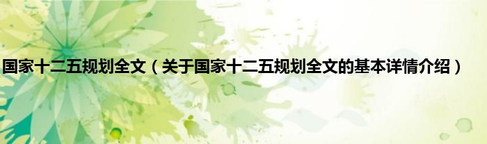 本文关于国家十二五规划全文的基本详情介绍就讲解完毕,希望对大家有所帮助。