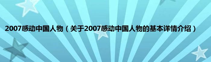 本文关于2007感动中国人物的基本详情介绍就讲解完毕,希望对大家有所帮助。