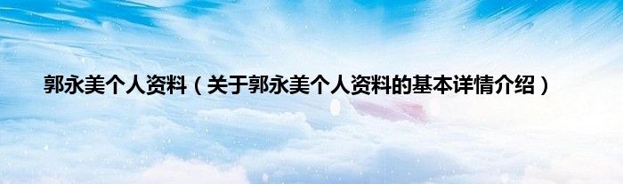郭永美个人资料(关于郭永美个人资料的基本详情介绍)