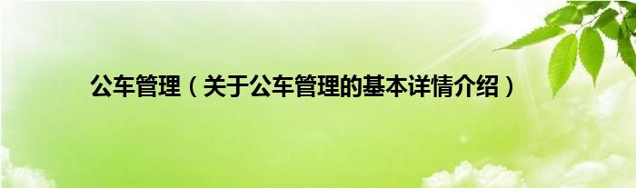 本文关于公车管理的基本详情介绍就讲解完毕,希望对大家有所帮助。