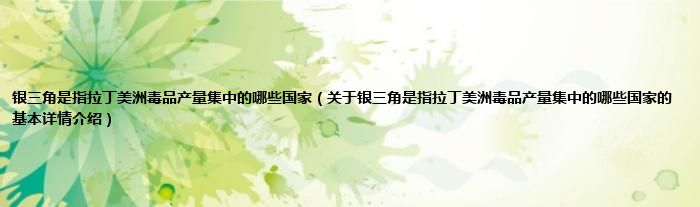 本文关于银三角是指拉丁美洲毒品产量集中的哪些国家的基本详情介绍就讲解完毕,希望对大家有所帮助。