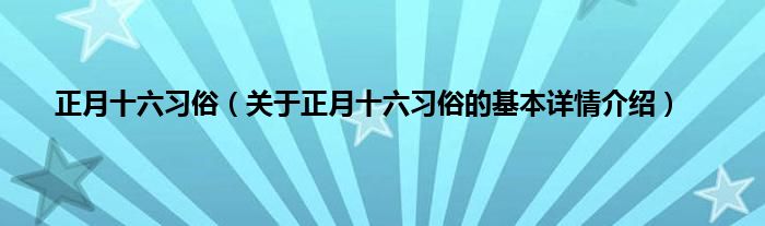 本文关于正月十六习俗的基本详情介绍就讲解完毕,希望对大家有所帮助。