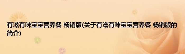 本文关于有滋有味宝宝营养餐 畅销版的简介就讲解完毕,希望对大家有所帮助。
