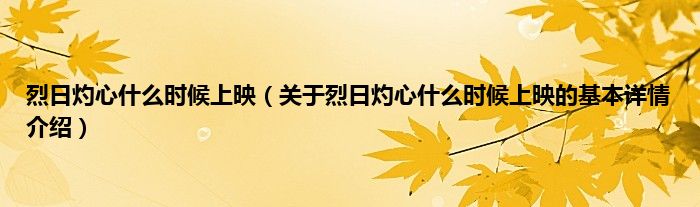本文关于烈日灼心什么时候上映的基本详情介绍就讲解完毕,希望对大家有所帮助。