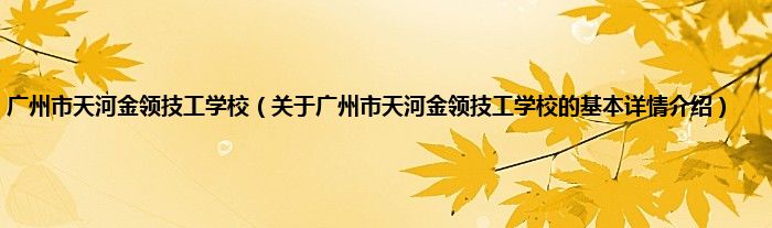 本文关于广州市天河金领技工学校的基本详情介绍就讲解完毕,希望对大家有所帮助。