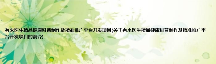 大家好,有来医生精品健康科普制作及精准推广平台开发项目,关于有来医生精品健康科普制作及精准推广平台开发项目的简介很多人还不知道,现在让我们一起来看看吧!