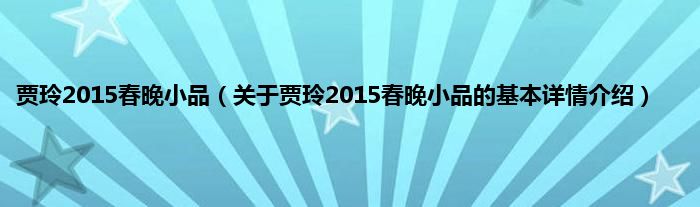 本文关于贾玲2015春晚小品的基本详情介绍就讲解完毕,希望对大家有所帮助。