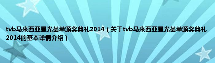 本文关于tvb马来西亚星光荟萃颁奖典礼2014的基本详情介绍就讲解完毕,希望对大家有所帮助。