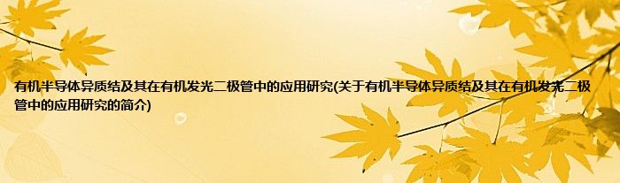本文关于有机半导体异质结及其在有机发光二极管中的应用研究的简介就讲解完毕,希望对大家有所帮助。