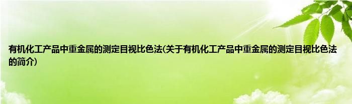 本文关于有机化工产品中重金属的测定目视比色法的简介就讲解完毕,希望对大家有所帮助。