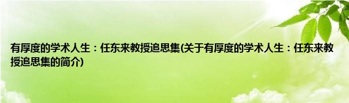 本文关于有厚度的学术人生:任东来教授追思集的简介就讲解完毕,希望对大家有所帮助。