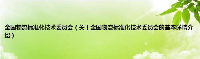 本文关于全国物流标准化技术委员会的基本详情介绍就讲解完毕,希望对大家有所帮助。