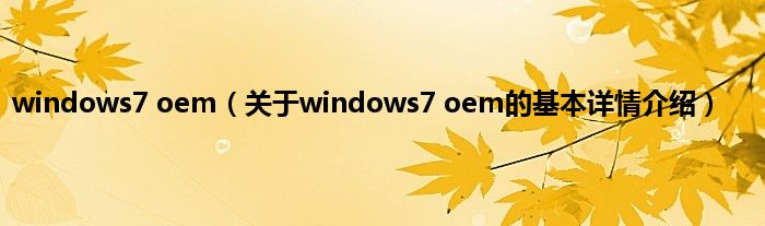 本文关于windows7 oem的基本详情介绍就讲解完毕,希望对大家有所帮助。