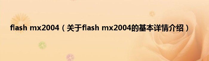 本文关于flash mx2004的基本详情介绍就讲解完毕,希望对大家有所帮助。