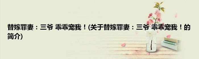 大家好,替嫁罪妻:三爷,乖乖宠我!,关于替嫁罪妻:三爷,乖乖宠我!的简介很多人还不知道,现在让我们一起来看看吧!