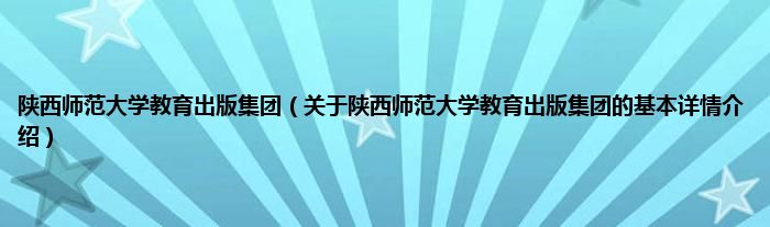 本文关于陕西师范大学教育出版集团的基本详情介绍就讲解完毕,希望对大家有所帮助。