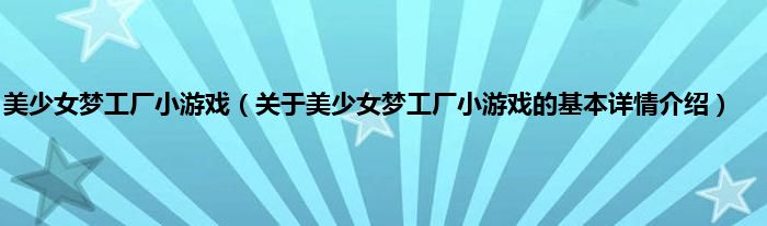 本文关于美少女梦工厂小游戏的基本详情介绍就讲解完毕,希望对大家有所帮助。