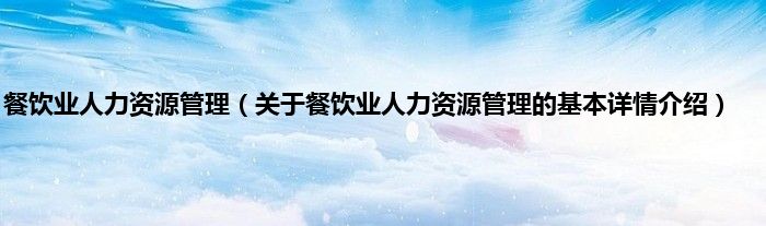 本文关于餐饮业人力资源管理的基本详情介绍就讲解完毕,希望对大家有所帮助。