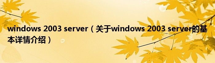 本文关于windows 2003 server的基本详情介绍就讲解完毕,希望对大家有所帮助。