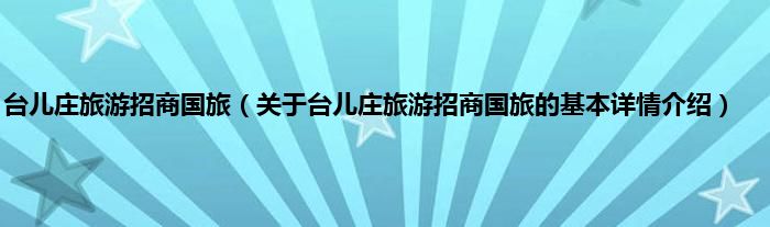 本文关于台儿庄旅游招商国旅的基本详情介绍就讲解完毕,希望对大家有所帮助。