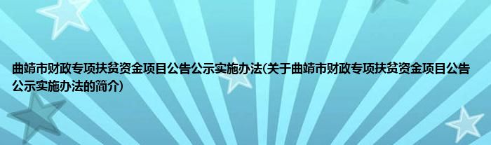 大家好,曲靖市财政专项扶贫资金项目公告公示实施办法,关于曲靖市财政专项扶贫资金项目公告公示实施办法的简介很多人还不知道,现在让我们一起来看看吧!