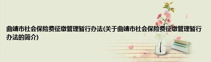 大家好,曲靖市社会保险费征缴管理暂行办法,关于曲靖市社会保险费征缴管理暂行办法的简介很多人还不知道,现在让我们一起来看看吧!