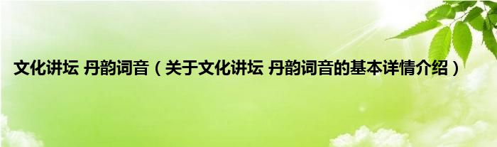 本文关于文化讲坛 丹韵词音的基本详情介绍就讲解完毕,希望对大家有所帮助。