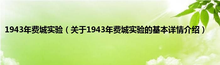 本文关于1943年费城实验的基本详情介绍就讲解完毕,希望对大家有所帮助。