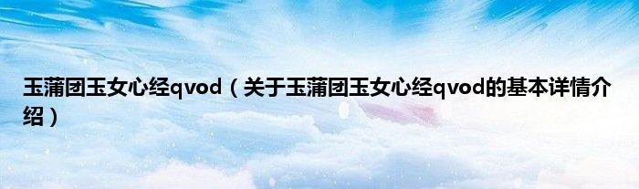 玉蒲团玉女心经qvod(关于玉蒲团玉女心经qvod的基本详情介绍)