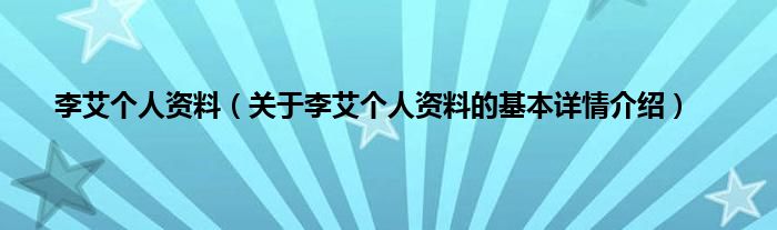 本文关于李艾个人资料的基本详情介绍就讲解完毕,希望对大家有所帮助。