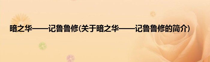1、 《暗之华——记鲁鲁修》是残雪幻月创作的网络小说。