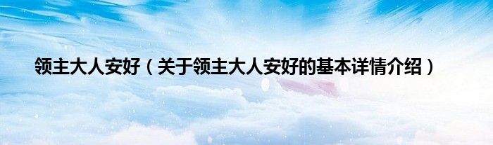 本文关于领主大人安好的基本详情介绍就讲解完毕,希望对大家有所帮助。