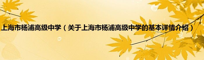 本文关于上海市杨浦高级中学的基本详情介绍就讲解完毕,希望对大家有所帮助。