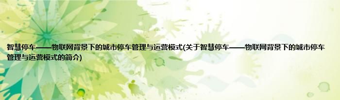 本文关于智慧停车——物联网背景下的城市停车管理与运营模式的简介就讲解完毕,希望对大家有所帮助。